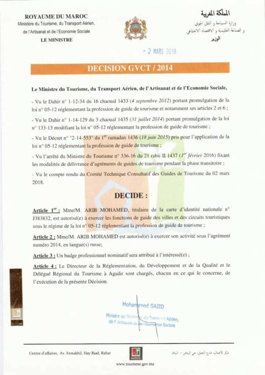 Я лицензированный русскоязычный гид с более чем 13-летним опытом. Лично организую VIP-туры, экскурсии и трансферы по всему Марокко — без посредников и с полным контролем качества.